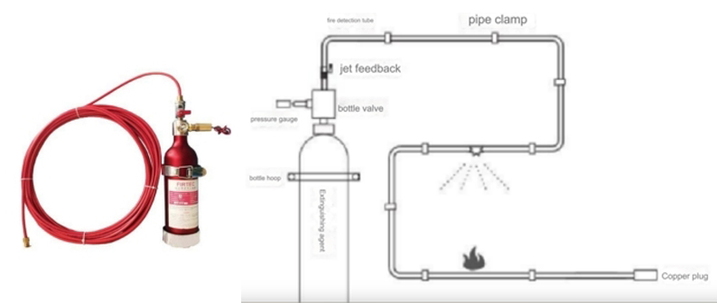 This type of fire extinguishing device uses a flexible and bendable fire detection tube as a fire detection and alarm component. At the same time, this fire detection tube can also serve as a pipeline for conveying and spraying fire extinguishing agents. The flexible fire detection tube can be easily arranged to the nearest point of each potential fire source. Once a fire occurs, the fire detection tube will rupture due to heat and immediately release the fire extinguishing agent to extinguish the fire.